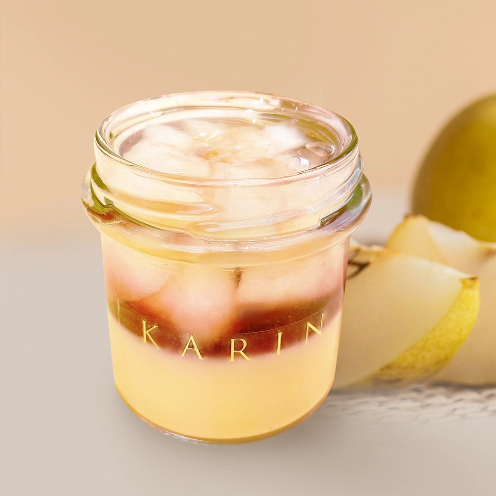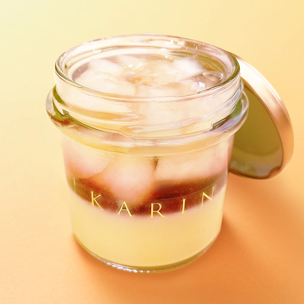 マスカルポーネクリームと素焚糖(すだきとう)を使用したなめらかなプリンの上に、イチゴとブルーベリーがたっぷり入ったゼリーを重ねました。間には甘酸っぱいイチゴゼリーがアクセントとなっています。